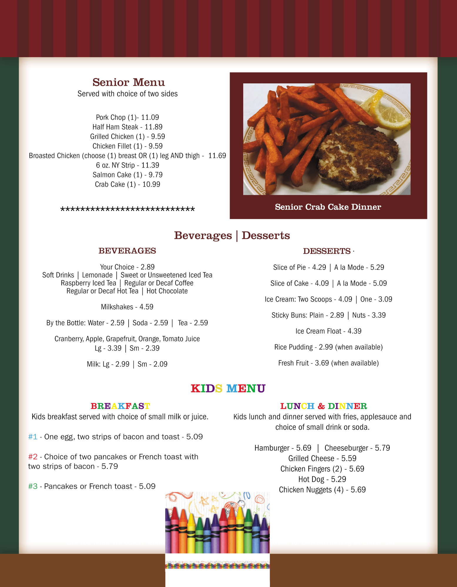 At Goodwil’s Family Restaurant & Bakery, we offer a wide array of options. Whether it would be for breakfast, lunch, or dinner; we have something for any occasion including options from the land to the sea, and for the kids and the seniors!